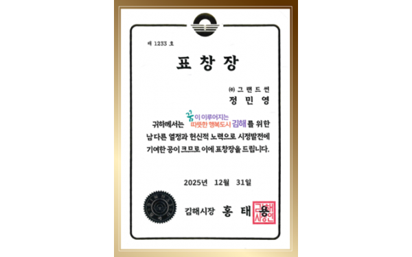 (주)그랜드썬, 연말 표창 수상...지역사회 기여 공로 인정