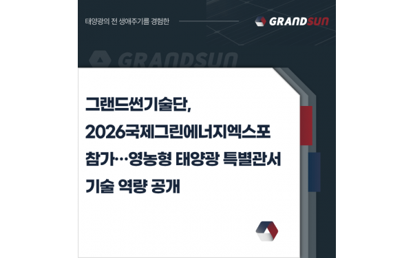 그랜드썬기술단, 2026 국제그린에너지엑스포 참가…영농형 태양광 특별관서 기술 역량 공개